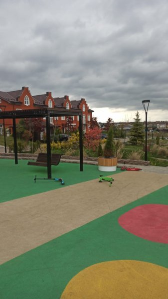 В поселке нет тротуаров, нет прогулочных зон - дети бегают перед машинами. Гостевых парковок тоже не предусмотрено - гости забивают своими машинами внутренние дороги тиак, что не разъехаться.