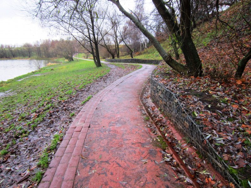 Раньше (до глобальных работ по благоустройству парка) это место на берегу пруда было самое труднопроходимое. В сырую погоду пройти было практически невозможно. Из расположенной на холме деревни вниз по склону постоянно сочилась вода. Грязюка была жуткая!
