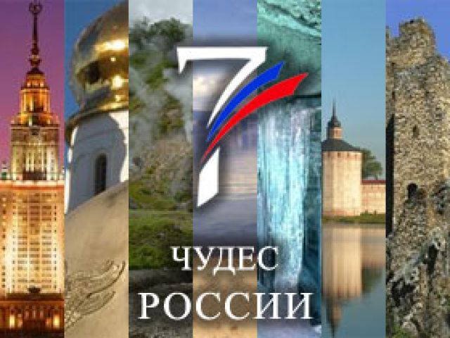 | Семь чудес России Семь чудес России — проект, целью которого стал поиск семи чудес России. Конкурс организован газетой «Известия», телеканалом «Россия» и радиостанцией «Маяк». Выборы семи «чудес страны» происходили через SMS и интернет. |